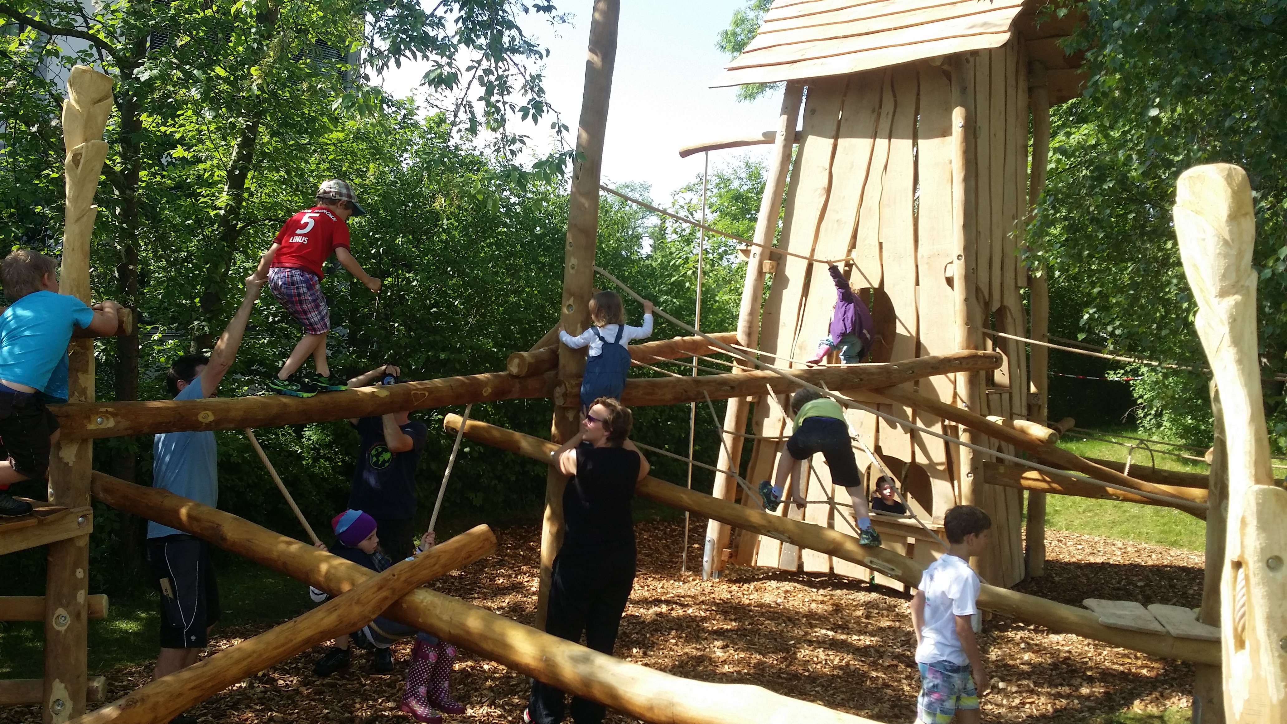 Stammikado, Niedrigseilgartenelemente, Rutschenhaus, Hügel, Fahrweg und 3-fach Schaukel - Gestaltung: 2014